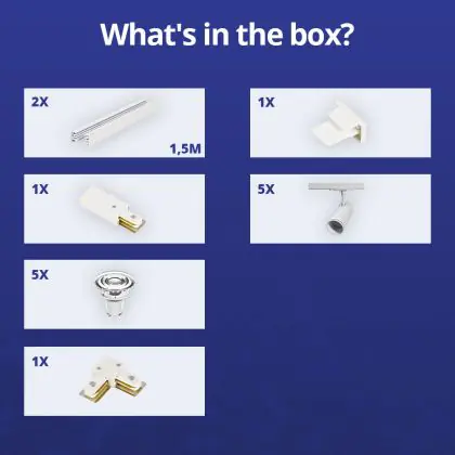 | Manufacturer Name | Complete L shaped 1-Phase Track Set White incl. 5x Spot fixture + GU10 2700K 3W Dim – 1.5 x 1.5 mete | |