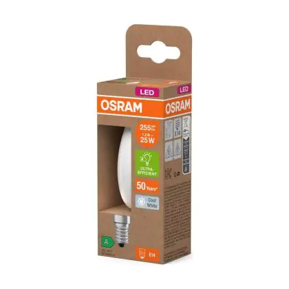 Osram LED Classic E14 Candle Filament Frosted 1.2W 255lm - 840 Cool White | Replaces 25W