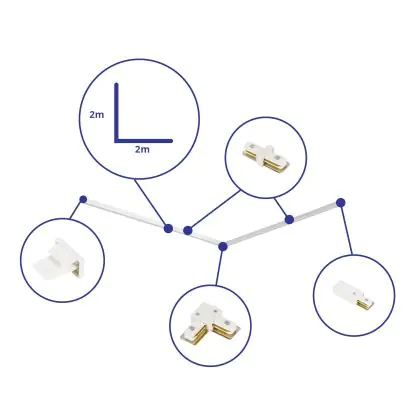 Rail Set 1-Phase L 2 x 2 Meter White | incl. End Cap, Power Connector and L -Connector